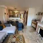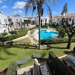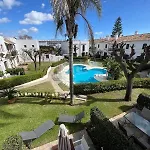 Estepona - Playa - Villa Con Acceso Directo A La Piscina Ev14 ligt op 1 km afstand van de Cueva del Gato en nodigt gasten uit om te ontspannen op een terras.